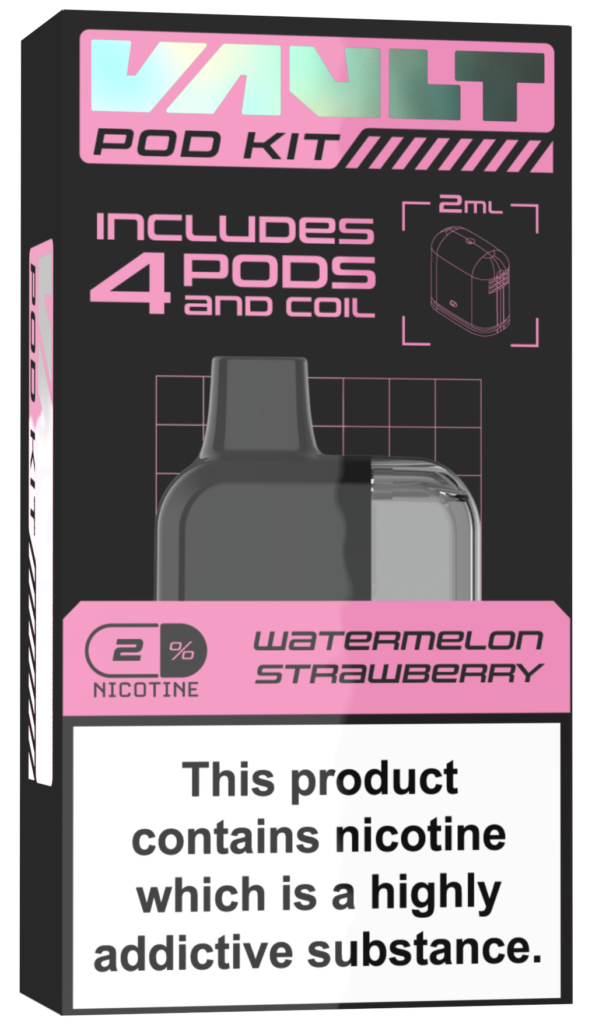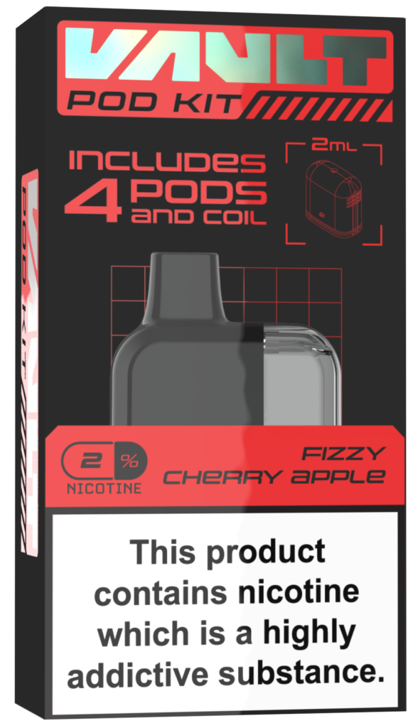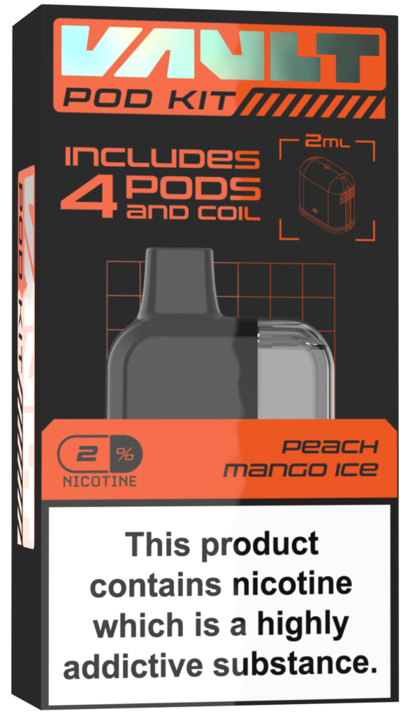 AVAILABLE IN 4 FLAVOURS. ALL VAULT POD KITS COME SUPPLIED WITH 4 - 2ML FLAVOUR PODS.
